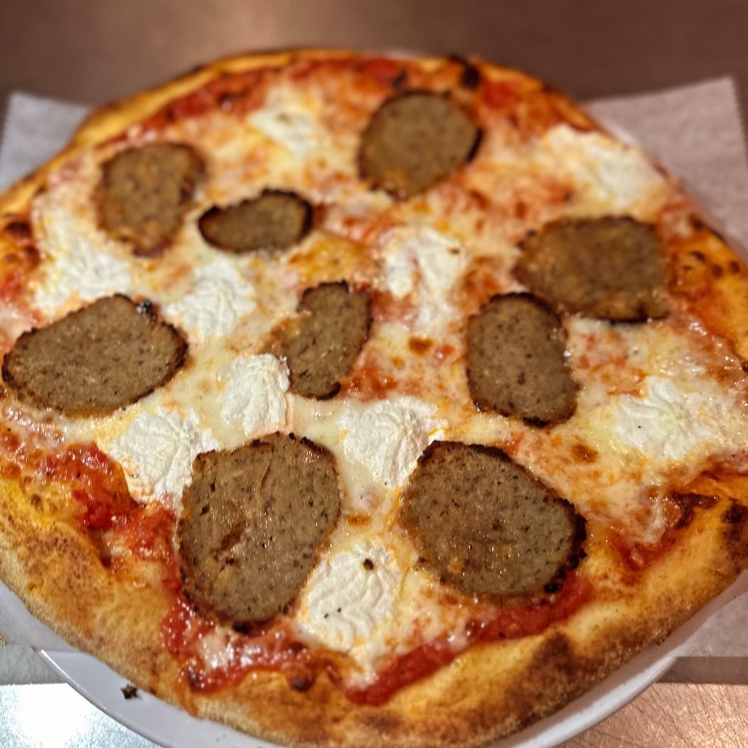 Crushed Italian Tomatoes, Mozzarella, Meatball, Ricotta Cheese, Grated Pecorino Romano and Olive Oil