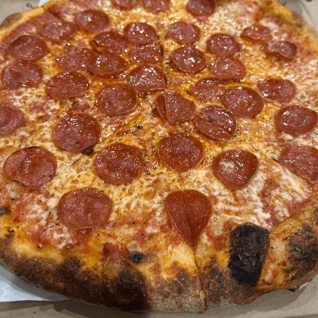 Crushed Italian Tomatoes, mozzarella cheese , Peperoni,Grated Pecorino Romano & Olive Oil