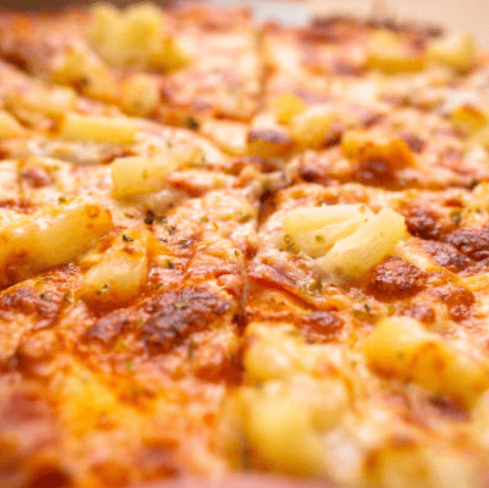 Tomato sauce, mozzarella, ham, pineapple